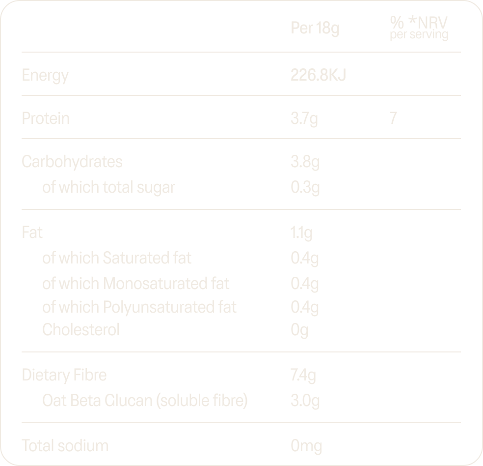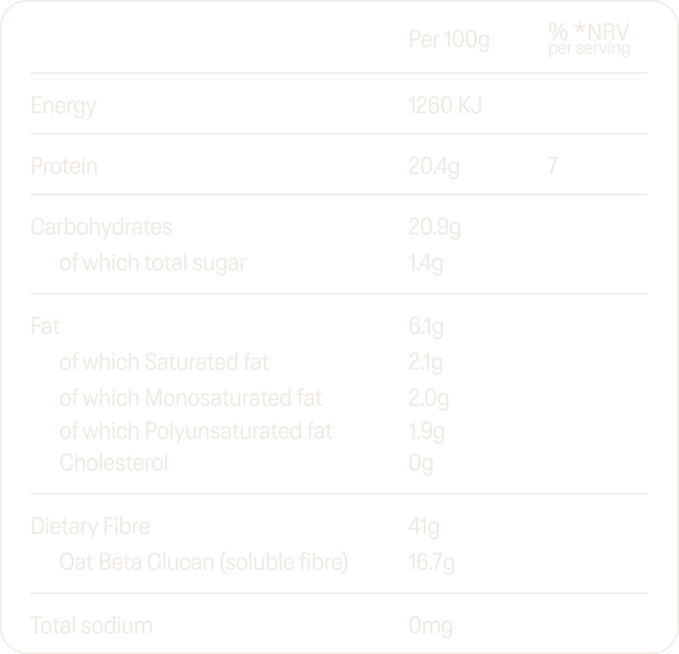 Nutritional information is for product as packed AOAC 995.16 method used to determine dietary fibre