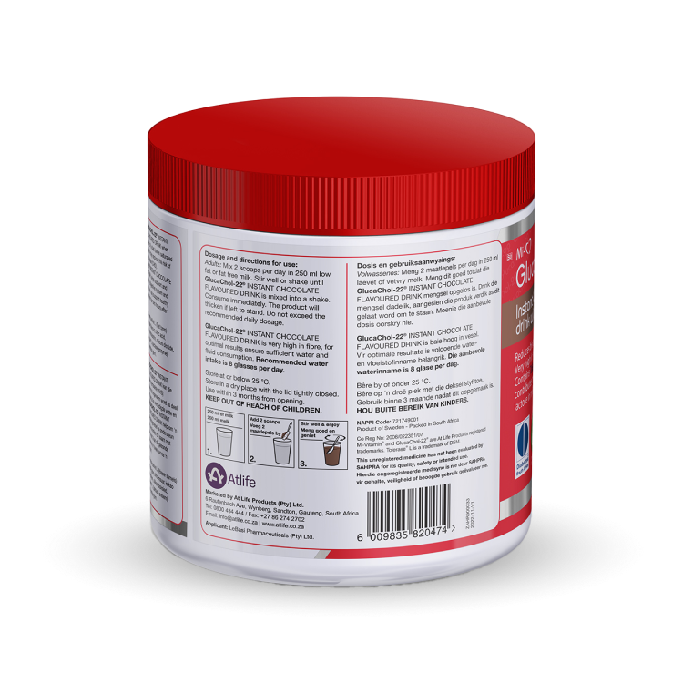 GlucaChol-22® Instant Chocolate Flavoured Drink is very high in fibre, for optimal results ensure sufficient water and fluid consumption.