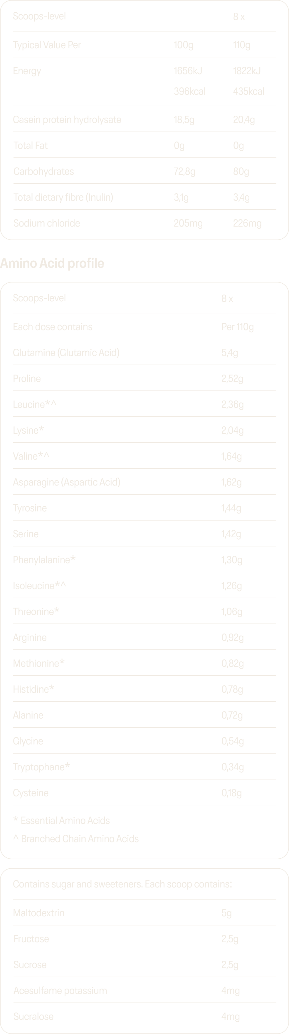 PeptoPro® contains all amino acids needed by humans in a very similar ratio to our own protein and includes glutamine and BCAA’s.