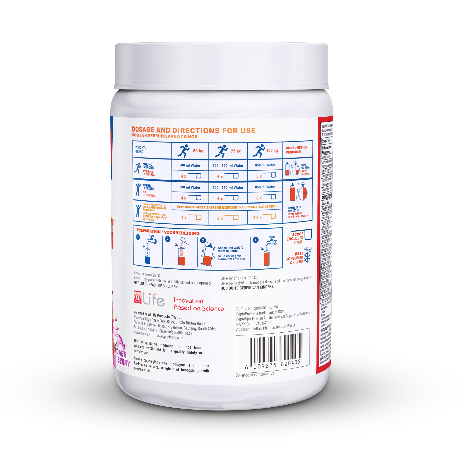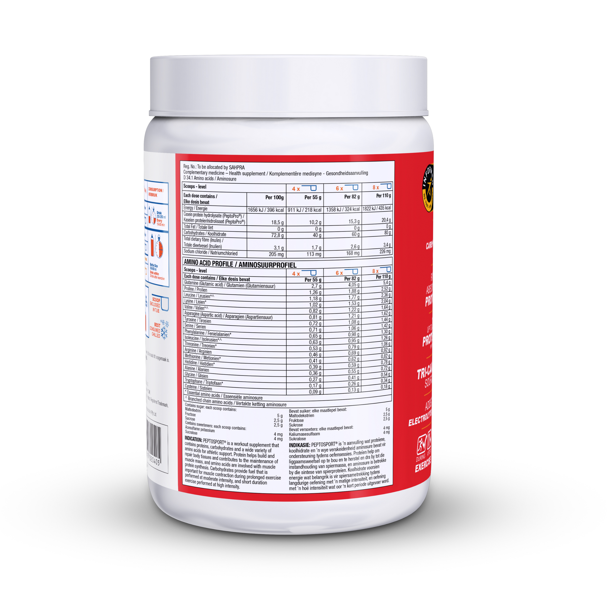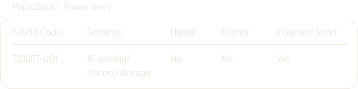 - PeptoSport® is mixed and consumed according to the athlete’s weight